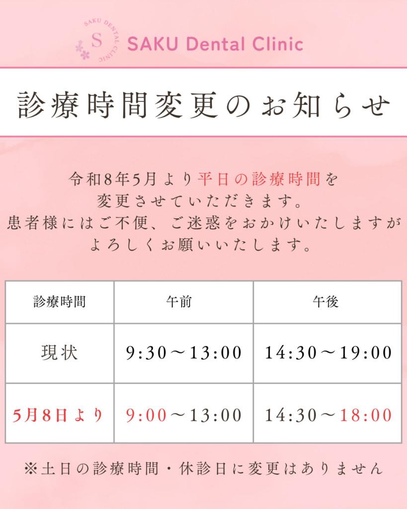 いつもSAKUデンタルクリニックをご利用いただきありがとうございます。