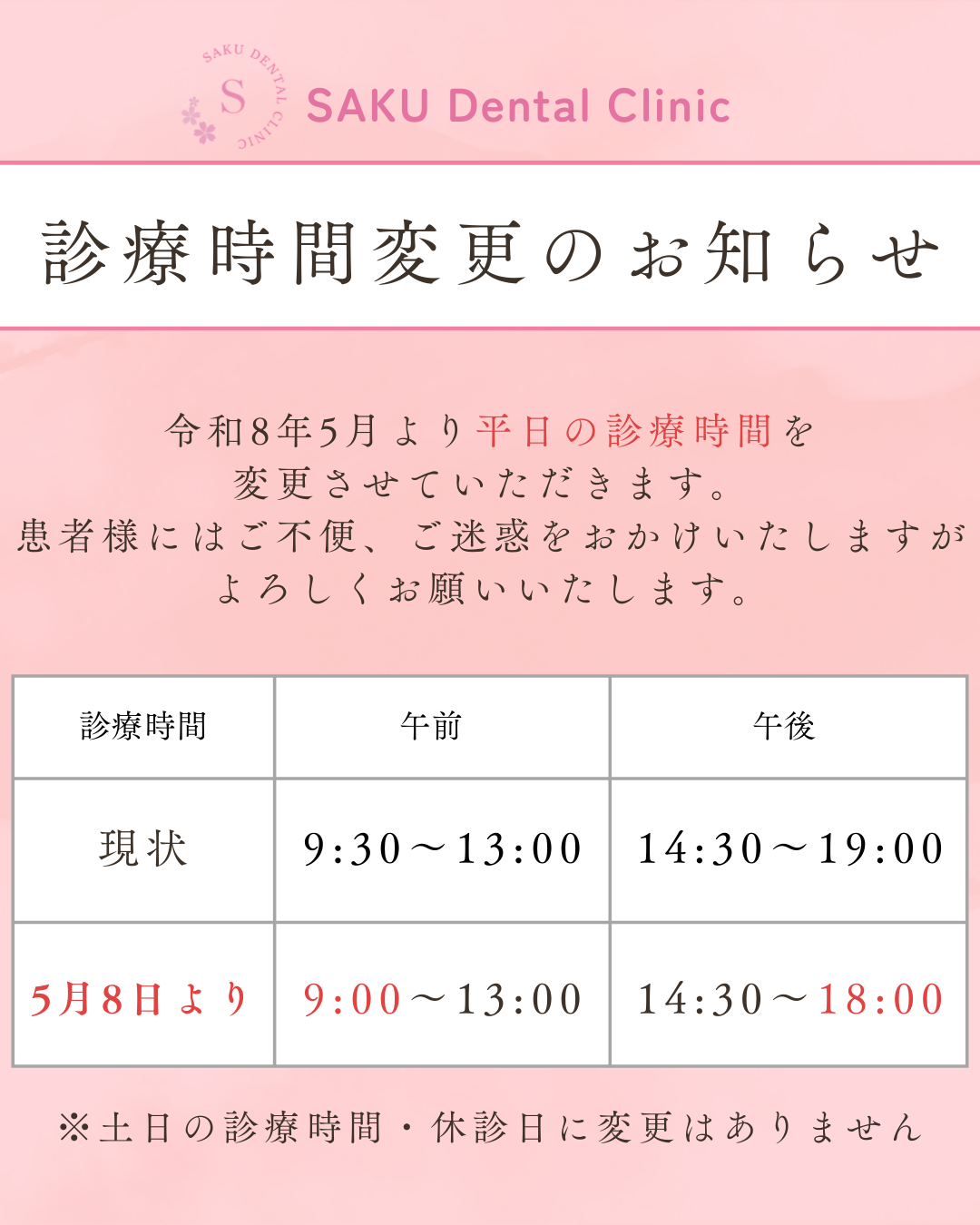 診療時間変更のお知らせ
